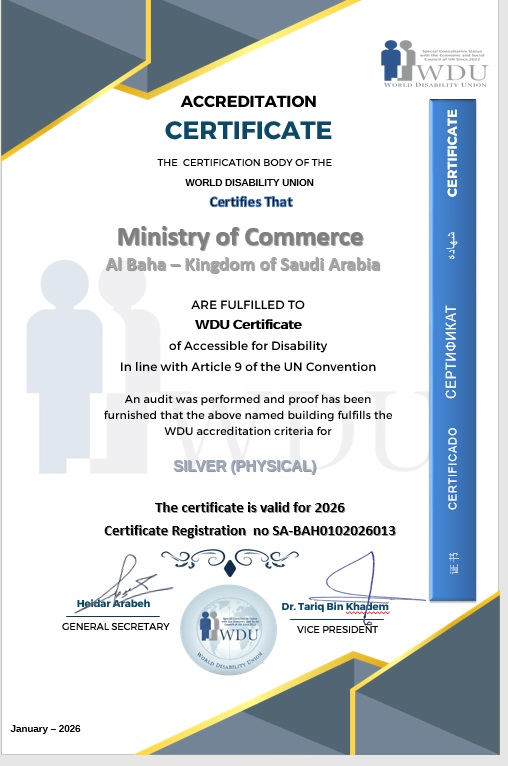 The Ministry of Commerce (MoC) is a national government authority in Saudi Arabia responsible for regulating, supervising, and developing commercial activities across the Kingdom. The Al-Baha branch serves local businesses and consumers by ensuring compliance with commercial laws, supporting entrepreneurship, and promoting a healthy business environment.