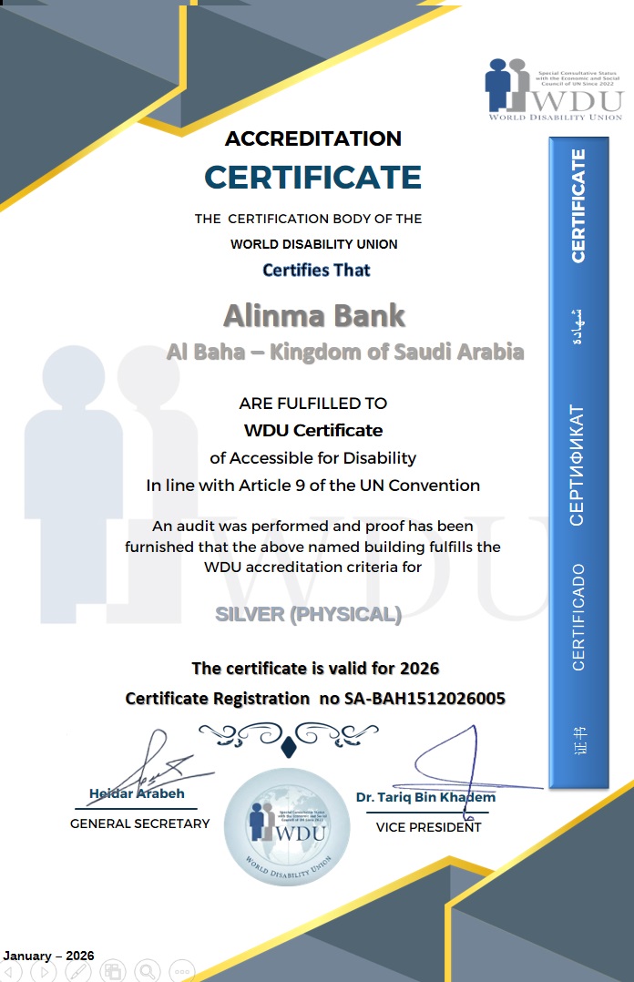 Alinma Bank is one of the leading Islamic (Shariah-compliant) banks in Saudi Arabia, with a strong presence across the Kingdom, including Al-Baha. Established in 2006, it operates as a modern financial institution focused on innovation, digital banking, and customer-centered services.