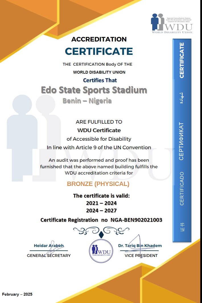 Edo State Sports Stadium – Benin – Nigeria (NGA-BEN902021003) Bronze (Physical) 2021-2027